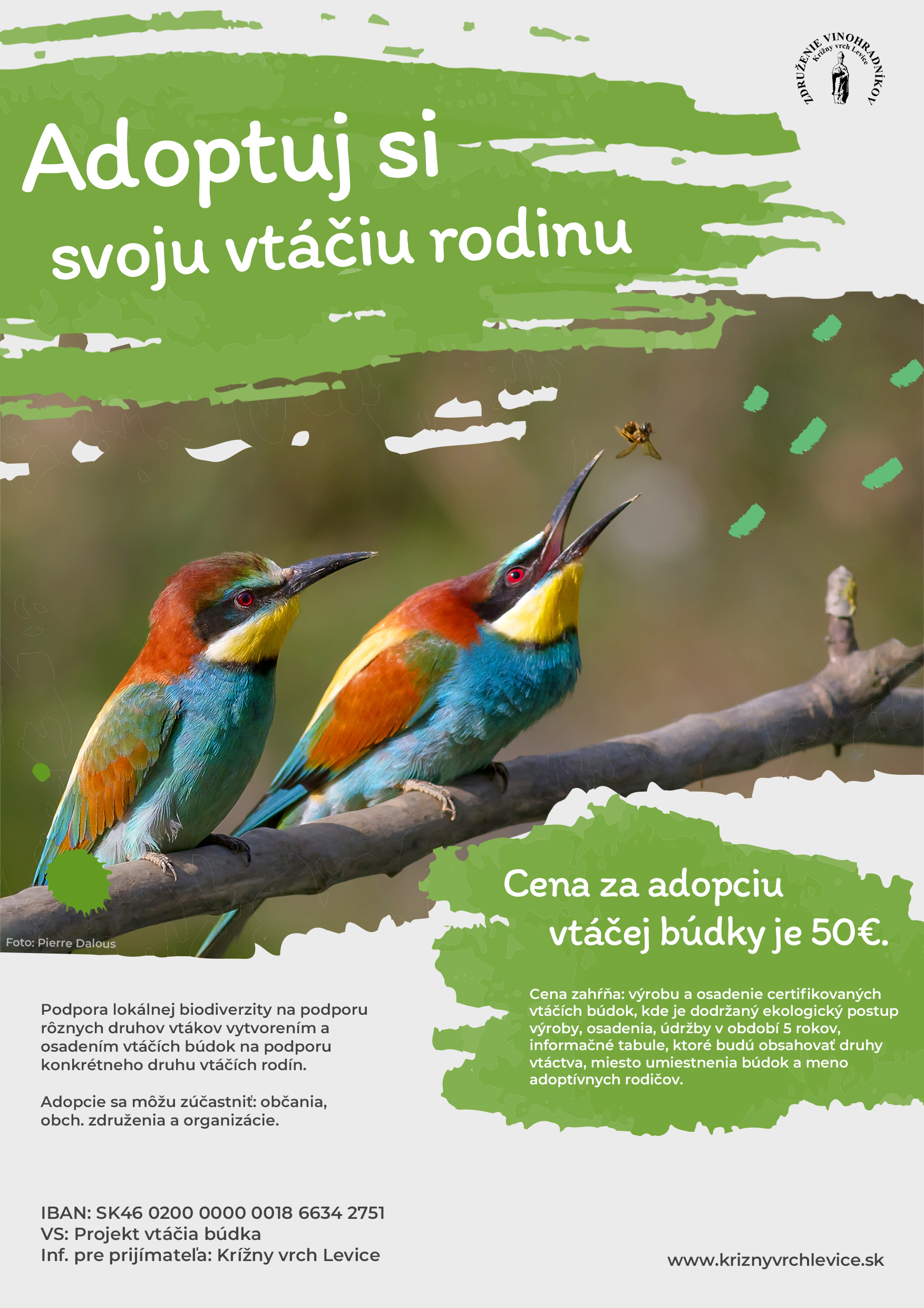 Cena zahŕňa: výrobu a osadenie certifikovaných vtáčích búdok, kde je dodržaný ekologický postup výroby, osadenia, údržby v období 5 rokov, informačné tabule, ktoré budú obsahovať druhy vtáctva, miesto umiestnenia búdok a meno adoptívnych rodičov.